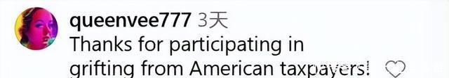 (截图来自Ins@alexiswilkins的评论区) “谢谢你参与诈骗美国纳税人!”